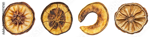 Dried banana slice isolated on transparent background' set of