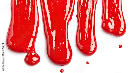 Drips of Vibrant Red Paint Flowing Down a Clean Surface Generative AI