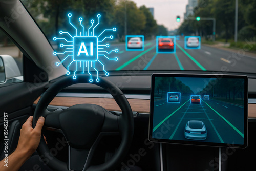 Driverless Technology: AI Controlled Vehicle Navigating Traffic with Advanced Object Detection on a Modern Highway.