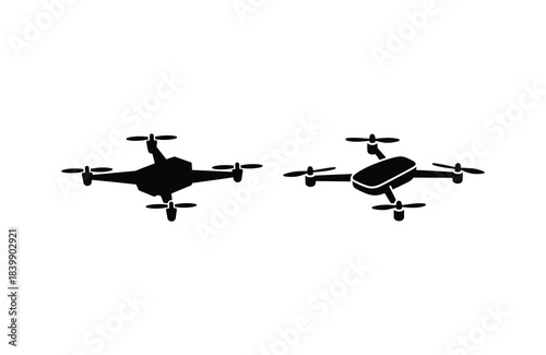 Drone quadcopter silhouette set aerial technology