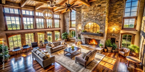 Drone View: Luxurious Stone House Interior Design, Modern Rustic Living Room