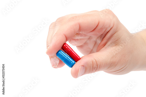 Drugs in hand on a white background