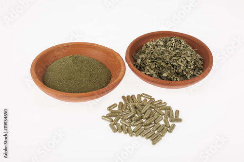 dry leaves and moringa powder capsules