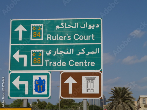Dubai, direction signs, United Arab Emirates