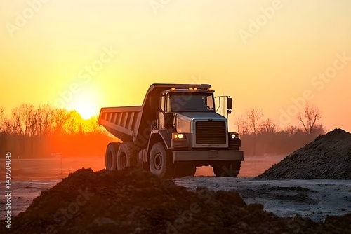 Dump Truck at Sunset on a Construction Site with Heavy Machinery
