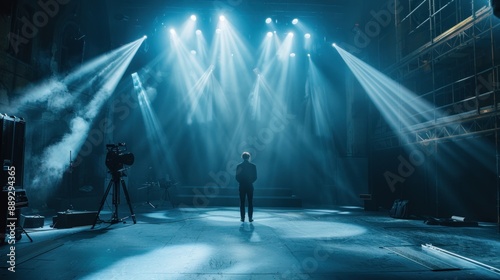 During a theatrical performance, a lighting designer operates a follow spot, tracking the lead actor across the stage. The focused beam of light ensures that the actor remains the center of