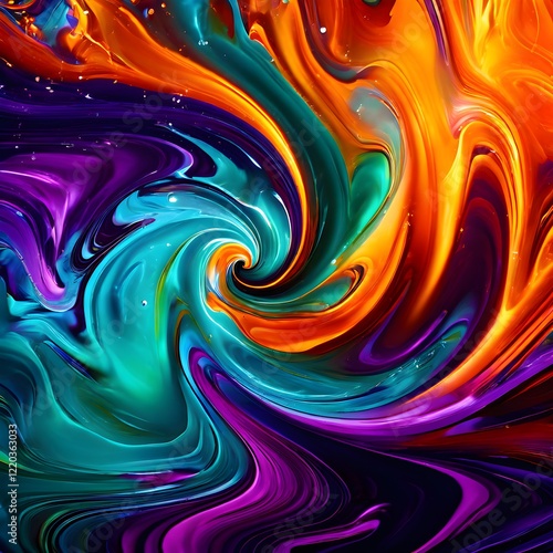dynamic abstract background with swirling liquid patterns and colorful light refraction