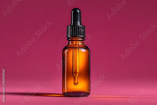 Dynamic amber glass dropper bottle pink background scene