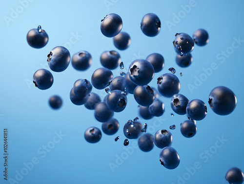 Dynamic Blueberries Falling on Bright Blue Background for Advertising