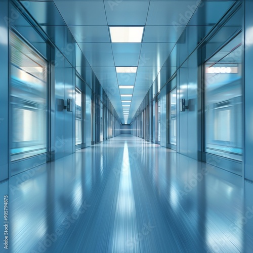 Dynamic Blur of a Long Corridor in a Building, Capturing the Essence of Urban Motion and Modern Life's Hustle and Bustle.
