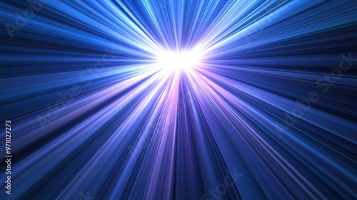 Dynamic Burst of Blue and Purple Light Rays Creating a Stunning Abstract Background with a Bright Central Glow