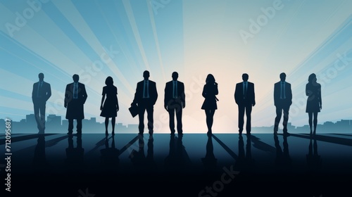 Dynamic business silhouettes: diverse professionals engaged in meetings and collaboration