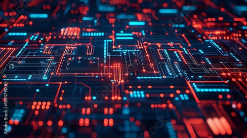Dynamic circuit patterns digital realm technology art futuristic environment high angle view innovation concept