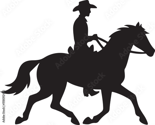 Dynamic cowboy silhouette with a rearing horse in vector format.