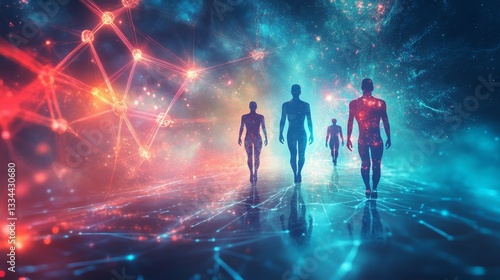 Dynamic human movement abstract digital space gigapixel artwork vibrant environment creative perspective glowing design