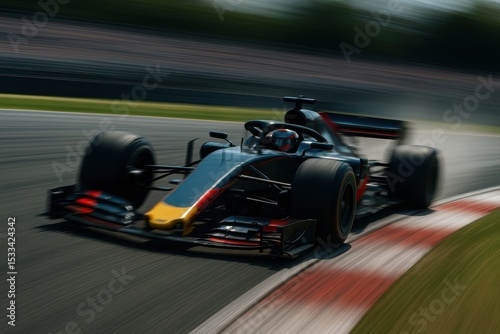 Dynamic racing car in high-speed motion with blur effects and competitive energy