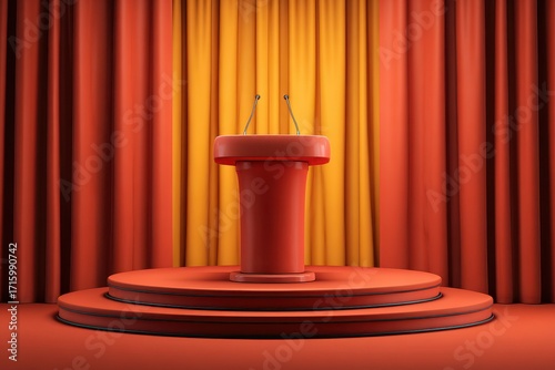 Dynamic Speaker Podium with Microphone Set Against a Vibrant Stage Atmosphere for Engaging Seminars and Conventions