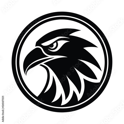 Eagle Head Silhouette in Circle Vector Art Illustration, Black Eagle Artwork
