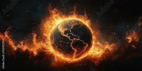 Earth in Flames Catastrophic Global Destruction Apocalyptic Crisis on Dark Background