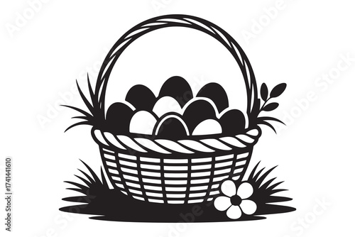 Easter basket with eggs simple icons. Vector Black silhouettes. with white background