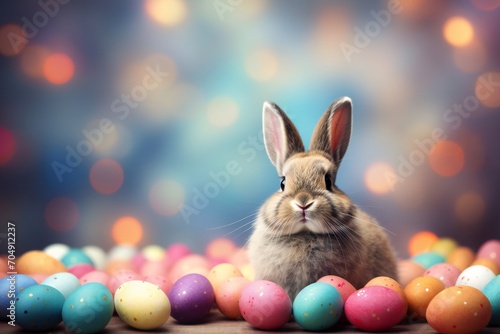Easter bunny and eggs background magical art with empty copy space Generative AI