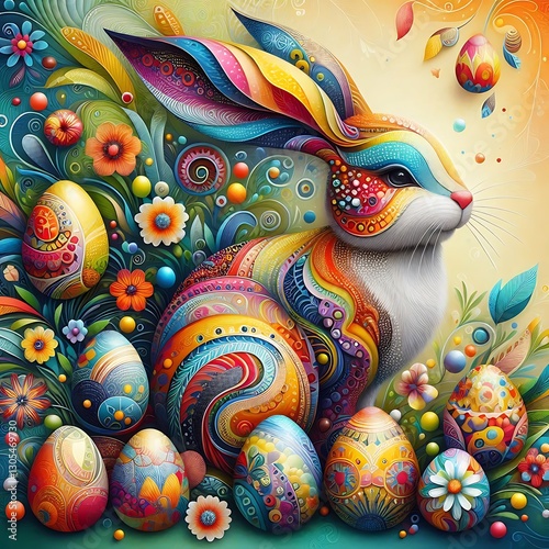 Easter bunny with easter eggs, Colorful Easter Bunny, Happy Easter Bunny - Easter Bunny in Spring Bloom