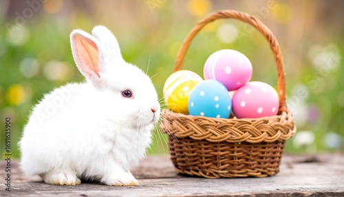 Easter Bunny with Eggs in Basket