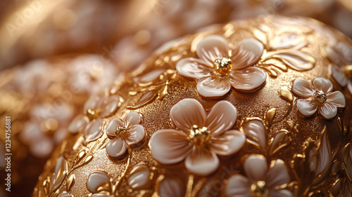 Easter chocolate egg. A painted Easter egg. Golden Easter egg. Easter card and chocolate painted egg.