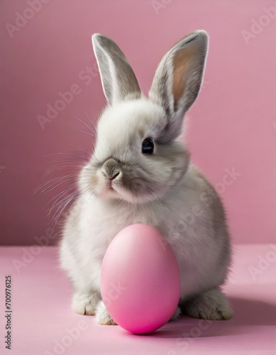 Easter Day - Cute Easter Bunny with Colorful Easter Eggs - Background with Space for Copy