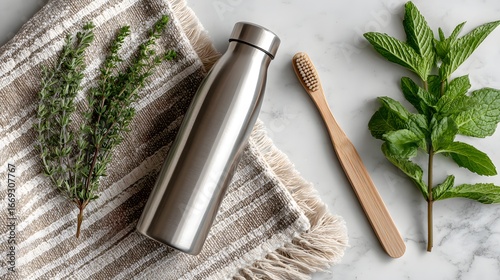 Eco-conscious stainless steel bottles natural elements for a wellness-oriented home aesthetic