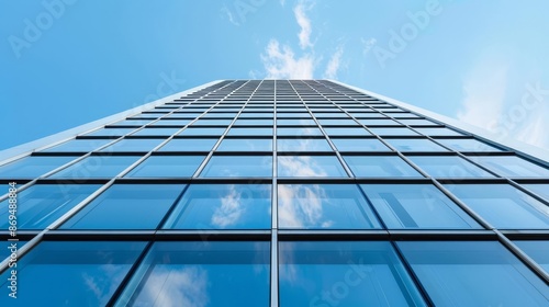 Eco-efficient office building, renewable energy sources, sleek architecture, daytime