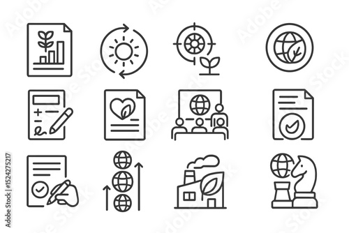 Eco-friendly icons illustrating sustainability, growth, and environmental awareness