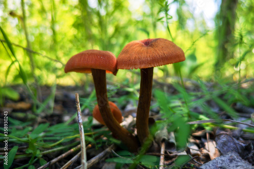 Edible mushroom grows in the forest.