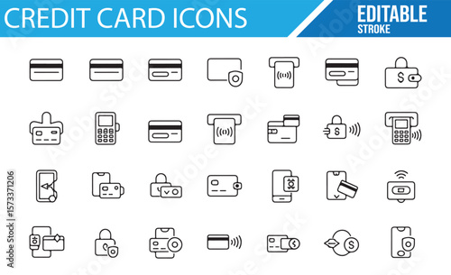 Editable Banking Icons for Card Payment Systems and Financial Design