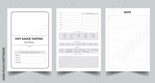 Editable Hot Sauce Tasting Journal Planner Kdp Interior printable template Design.