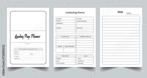 Editable Landing Page Planner Kdp Interior printable template Design.