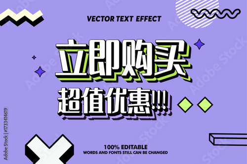 Editable text effect Buy Now, Super Value Offer Chinese Text 3D Editable Banner for Online Sale Print