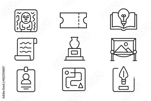Education and museum line icon set. learning, art, ticket, book outline collection