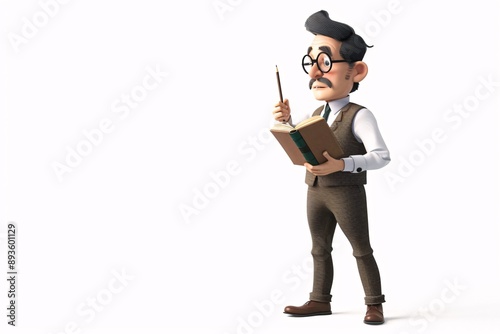 Educator in 3D: Professional Teacher Character with Book and Pointer on White Background