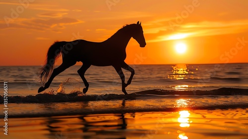 駿馬在海邊奔跑,激起水花,太陽在海é¢ä¸Šè½ä¸‹ï¼Œé‡‘色的陽光ç‘åœ¨é¦¬åŒ¹çš„èº«ä¸Šï¼Œä½¿ç‰ çœ‹èµ·ä¾†åƒä¸€åŒ¹ç¥žé§’。