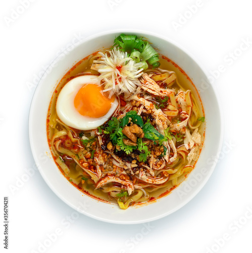 Egg Noodles with Chicken and Boiled Egg in Clear Soup