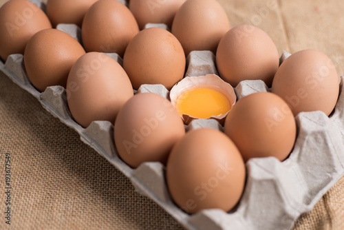Eggs in the egg panel on cloth background.