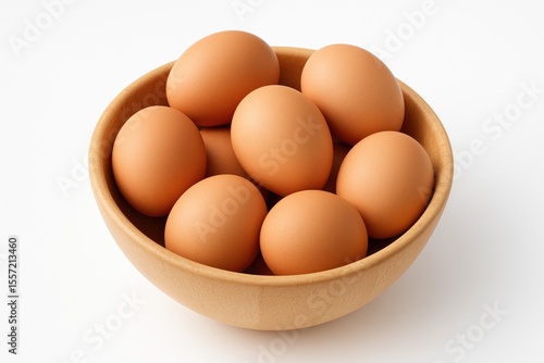 Eggs resting in a bowl against a plain white backdrop