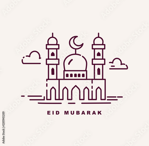 Eid Mubarak arabic calligraphy with line art design logo