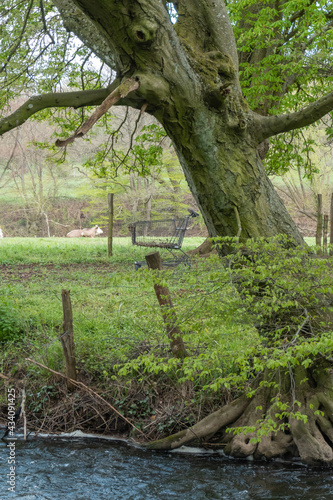 Ein Einkaufswagen mitten in der schönen Flusslandschaft
