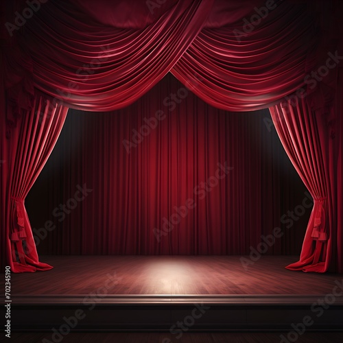 Eine leere Bühne mit einem roten Samtvorhang