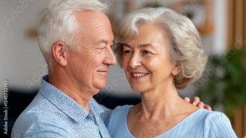 Elderly Couple Dancing Each Other in a Bright Indoor Living Space with Joyful Expressions
