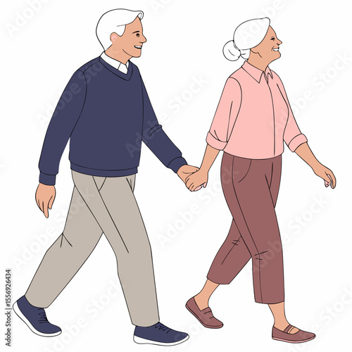 Elderly couple walking hand in hand senior
