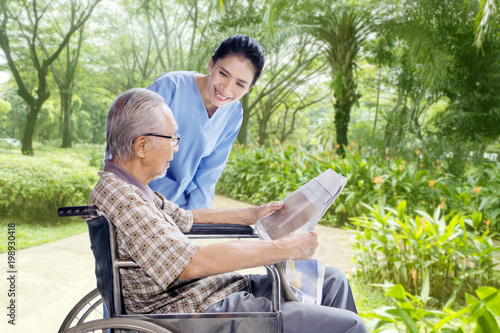 Elderly man relaxing with his caregiver