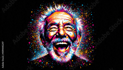 Elderly man with vibrant colors in a dynamic artistic portrait